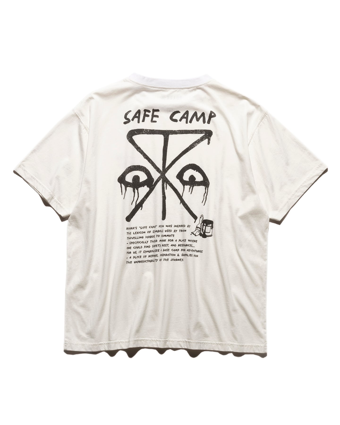 背中のSAFE CAMPグラフィックが特徴的なS/S Tシャツ。