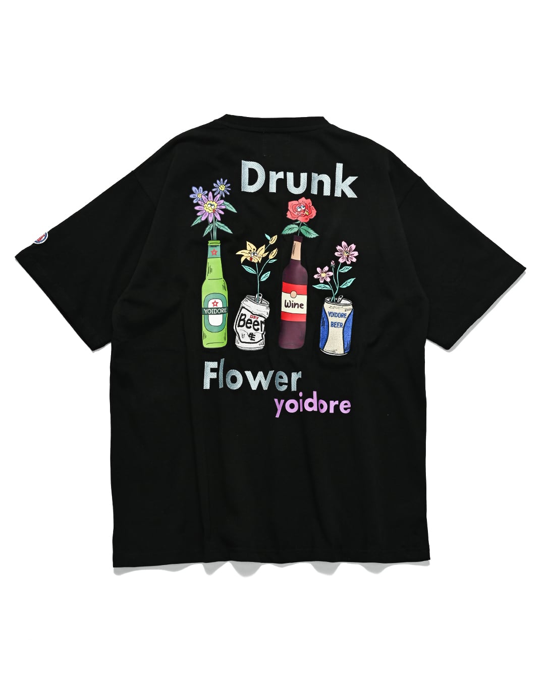 バックは「Drunk」「Flower」のロゴを刺繍、